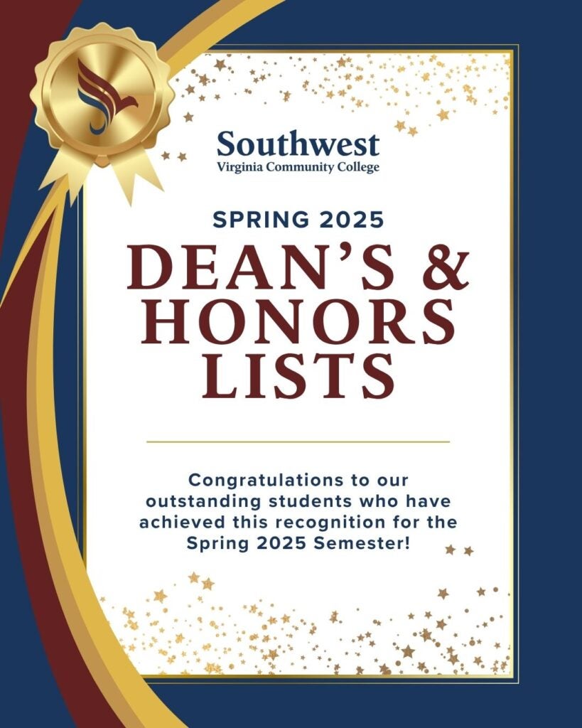 Southwest Virginia Community College is proud to recognize its top-performing students each semester. To achieve Dean’s List status, students must be full-time, complete at least 12 credits, and maintain a 3.20 GPA. For part-time students, Honors List status requires at least 6 credit hours and a minimum 3.50 GPA.